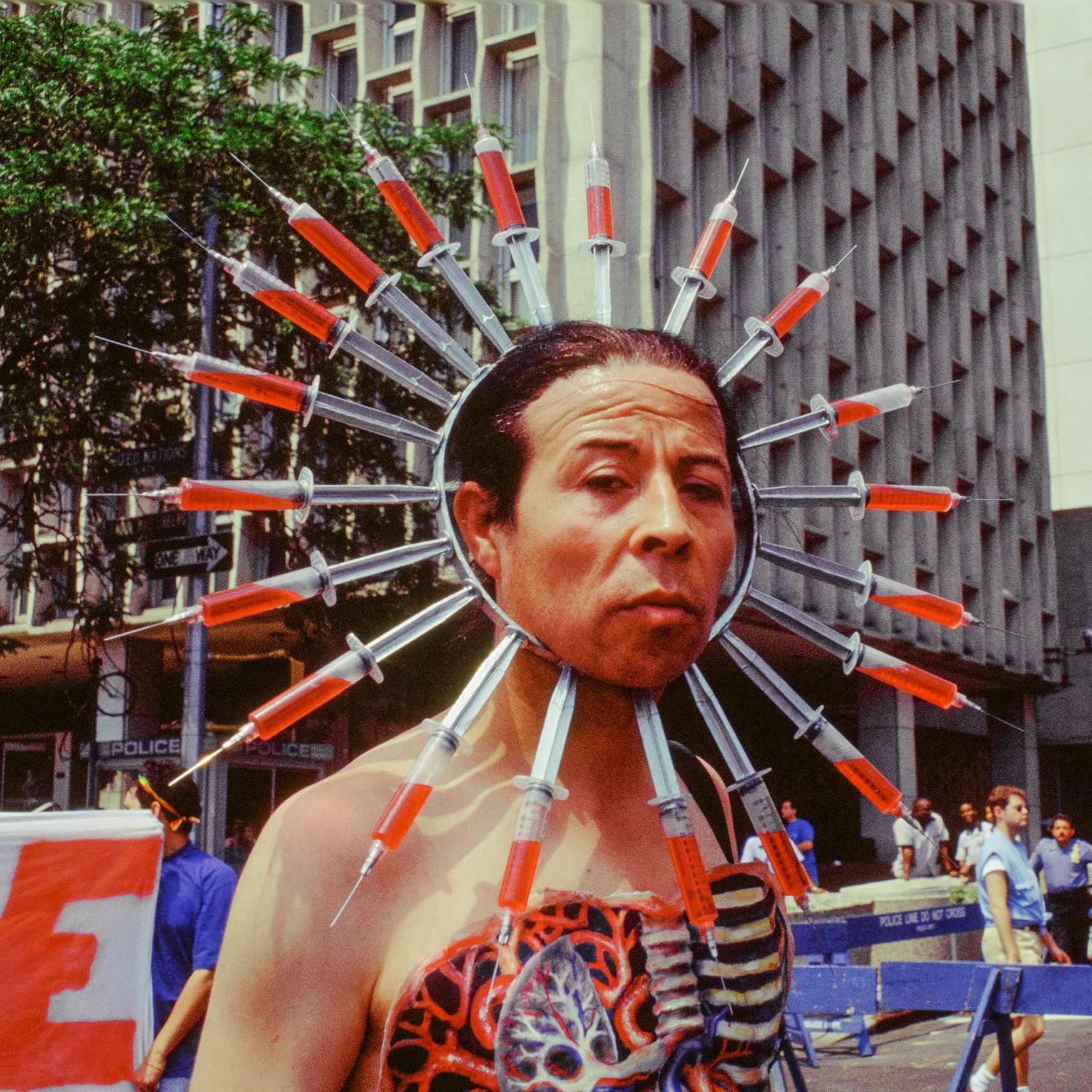 Pedro Lemebel en el desfile del orgullo de New York City's, 1994. Ph:Barbara Alper.