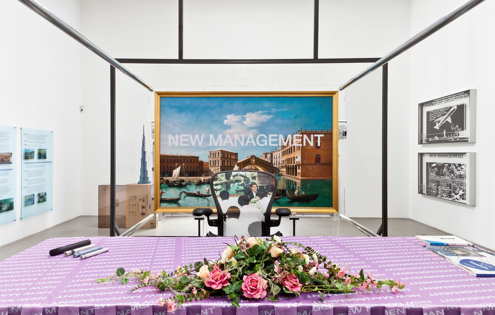 Simon Denny. New management, 2014, Portikus, Alemania.