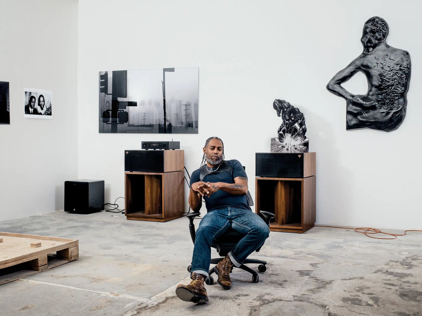 Arthur Jafa en su estudio. En la pared a la derecha "Ex slave Gordon" 2017.