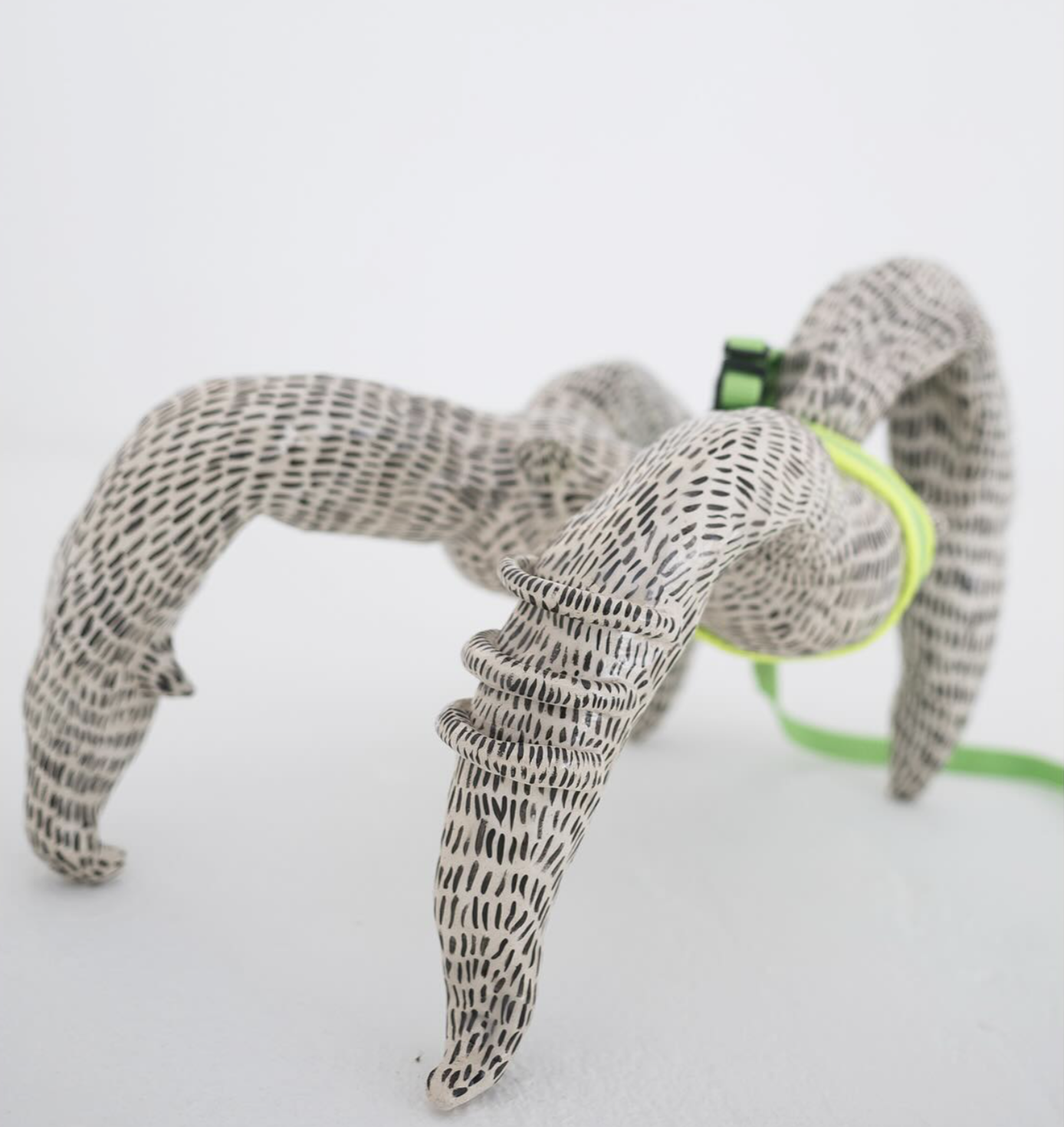 Partiendo de la indumentaria como extensión del cuerpo, la muestra propuso una reflexión crítica sobre los sistemas simbólicos que organizan lo real y median nuestros cuerpos, deseos y afectos, entendiendo el vestir como un espacio de producción de subjetividad y transformación. En palabras de la artista, la obra activa preguntas sobre aquello en lo que creemos, lo que consumimos y los lenguajes que median nuestros cuerpos, deseos y vínculos con entidades humanas y no humanas.